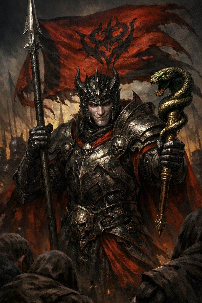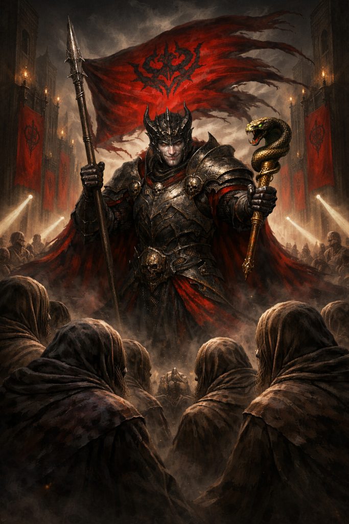 The spear in the Duke’s hand supports and amplifies this effect. It turns readiness to attack into a military expression of loyalty. The standard-bearer strives to see enemies everywhere, because without an enemy the raised banner loses its sacred meaning. They urgently need an outsider in order to feel themselves — an insider. They need danger to justify their own extreme rigidity. They need struggle to drown out their own longing. In such a state, aggression is perceived as a moral task, and the humiliation of another as confirmation of one’s own belonging to power. The system gets a free soldier, and Abigor gets food: the energy of service, the thrill of righteousness, suppressed guilt, and the sweetness of permitted and justified cruelty.
