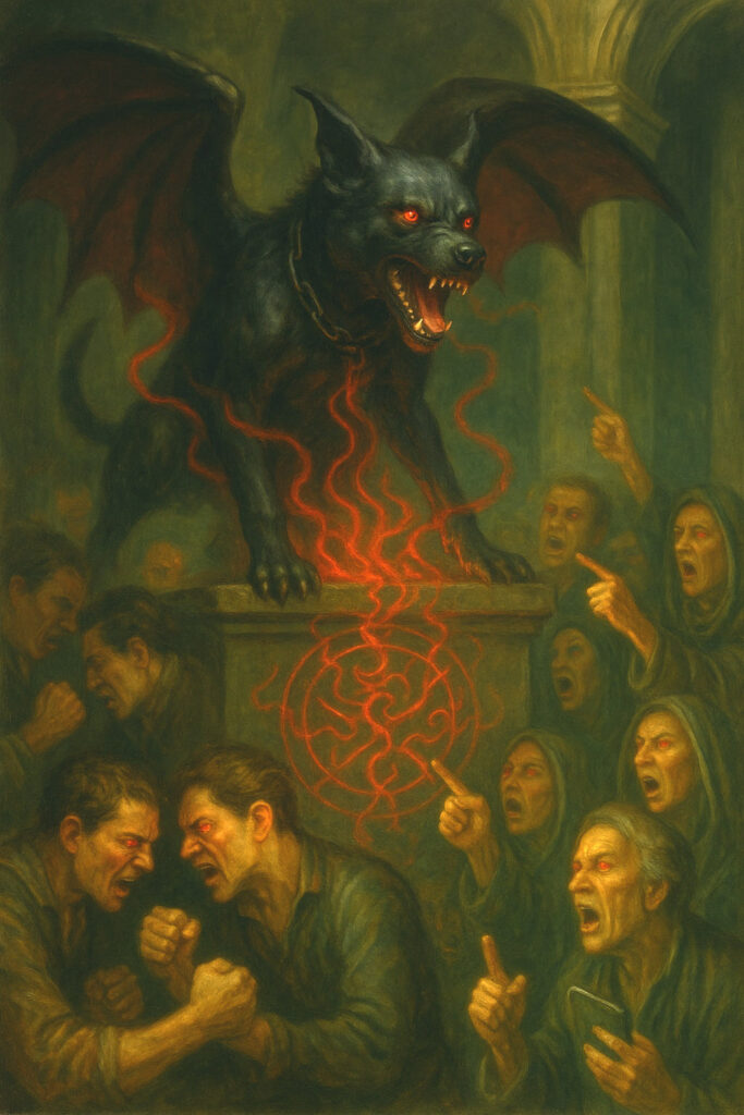 In today’s digital environment, reputation is more important than strength, and therefore where a “mistake” is experienced as “the end,” the paranoid logic of “preemptive strikes” naturally grows — “the best defense is attack.” The influence of Naberius creates a justification for “hate rhetoric,” Leraje mobilizes “commissars,” and Glasya-Labolas legitimizes the bites as “care for safety.” In crises they are often also helped by Vual — a demon of false closeness, cementing the pack (“we are together”) and legitimizing exclusions.