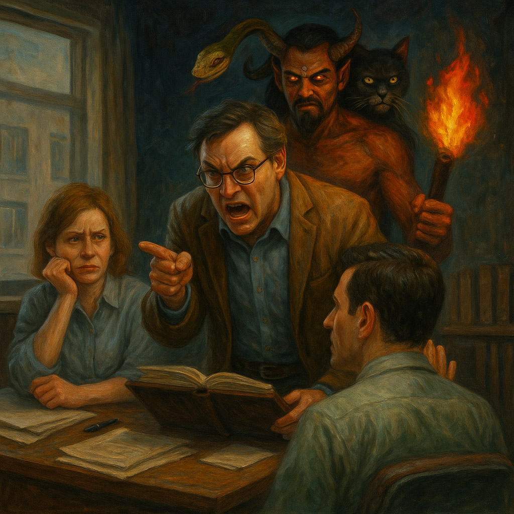 The demon often takes hold of intellectuals, “gifted children,” those accustomed to being right, valued, the best. It strikes, first of all, those who genuinely understood much. In them it develops a mania of omniscience, intolerance toward the other, and a seething rage at “fools” or “profane people.” Haborym especially willingly settles in institutes — universities, spiritual schools, editorial offices — where he erects cults of “scientificness” or “orthodoxy” and produces a caste of “owners of truth,” guarding it from mere mortals.