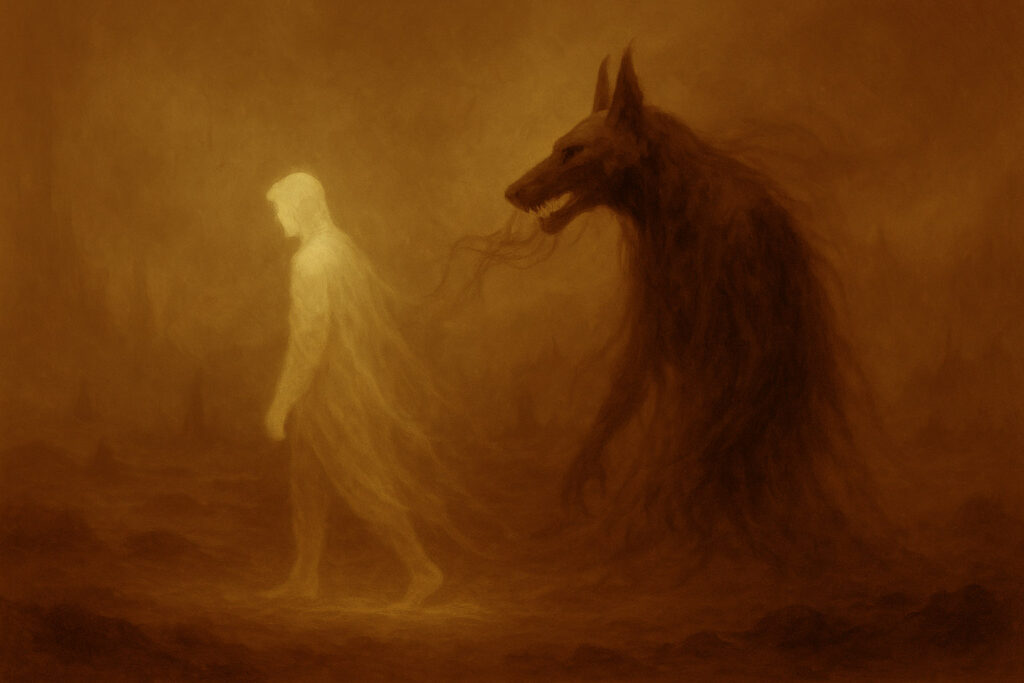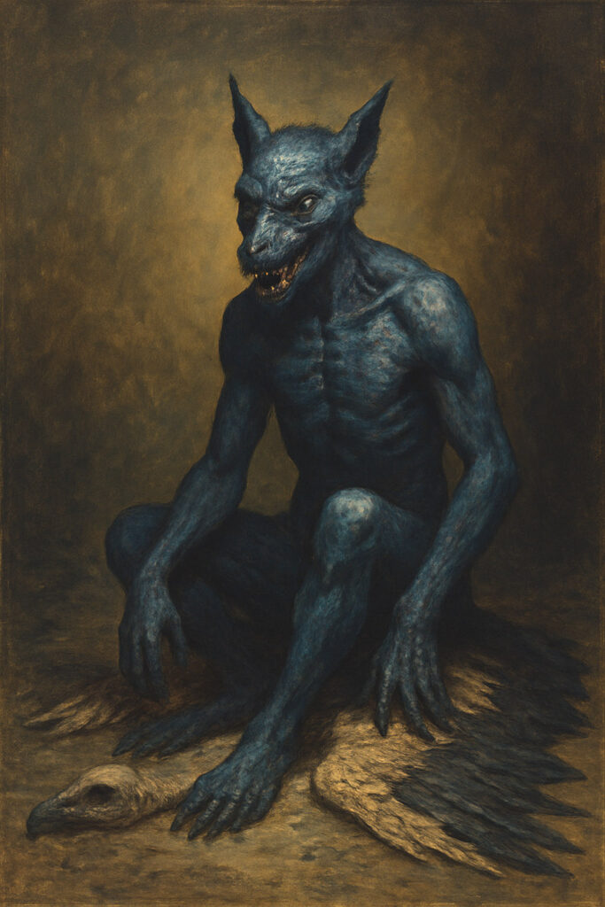 And it is precisely this function that eurynomes perform — the scavengers of the Interworld. They cleanse the Interval of the “corpses of energy.” In different mythological systems, these entities are known under different names. In India these are bhutas, dwelling by cremation fires and feeding on the remnants of breath and discarded shells. In China and Japan — moryo and timimoryo, spirits of swamps and rot that devour corpses and energetic clots. In Africa — yiena, hyena-like spirits symbolizing the disposal of carrion and the return of energy to the earth. In Burma — taie, ghosts that finish eating the remains of the unquiet, and so on. The Greek tradition preserved the image of Eurynomos as a monstrous daemon stripping flesh from the bones of the dead. All these figures express one and the same principle: even “toxic” energy must not simply be “stored away”; everything must be processed and returned to the flow.