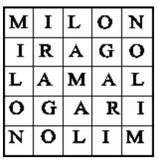 The third book of “Sacred Magic” is devoted to another interesting technical feature of the system — “Magic Squares.” Ideologically akin to the “Tablets” of John Dee’s Enochian system, these squares include a variant of the famous “Sator, Arepo, Tenet, Opera, Rotas” — one of the pentacles given in the Key of King Solomon. Many symbolic letter-squares have the character of a double acrostic; moreover, in those corresponding to large numbers the letters do not fill the square completely but are distributed in the shape of a gnomon, and so forth. There are also squares in which the central part is left empty. Each of the squares has its purposes, for example: