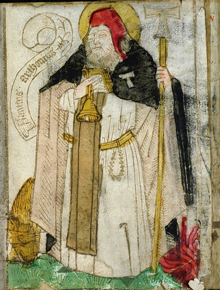 The Tau Cross was also used as an emblem by the medical Order of Saint Anthony from the 11th century. Members of this order wore black garments adorned with a blue Tau Cross. This clothing came to be associated with their holy patron Anthony the Great, who, accordingly, was depicted with a Tau-shaped cross on his cloak. It is believed that the Tau Cross represents a stylized image of this saint’s staff, crowned with a horizontal crossbar, on which he leaned in old age. According to tradition, he also used it to drive away demons, including those that cause diseases.