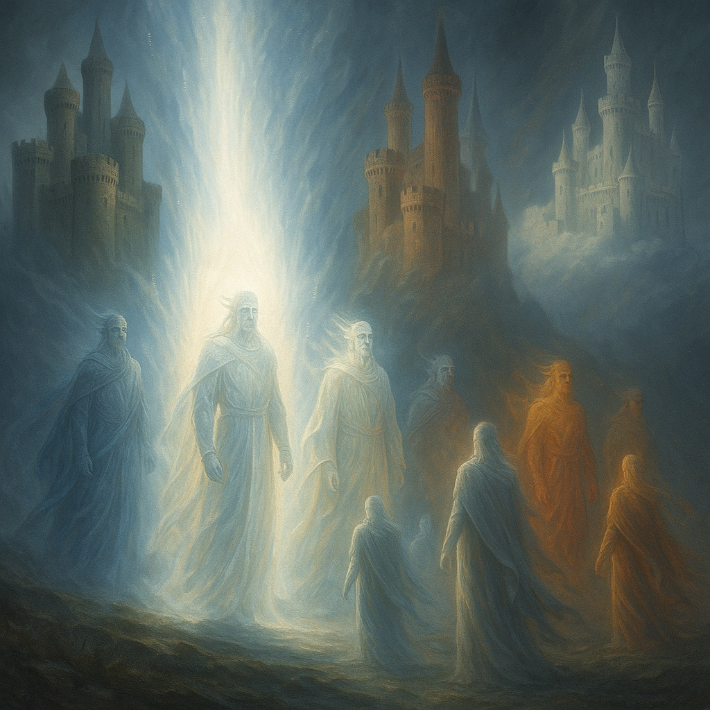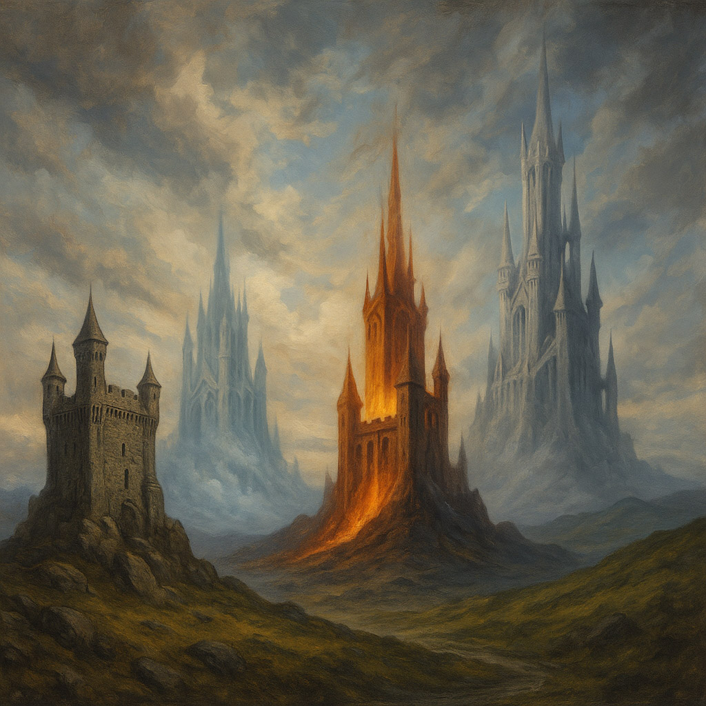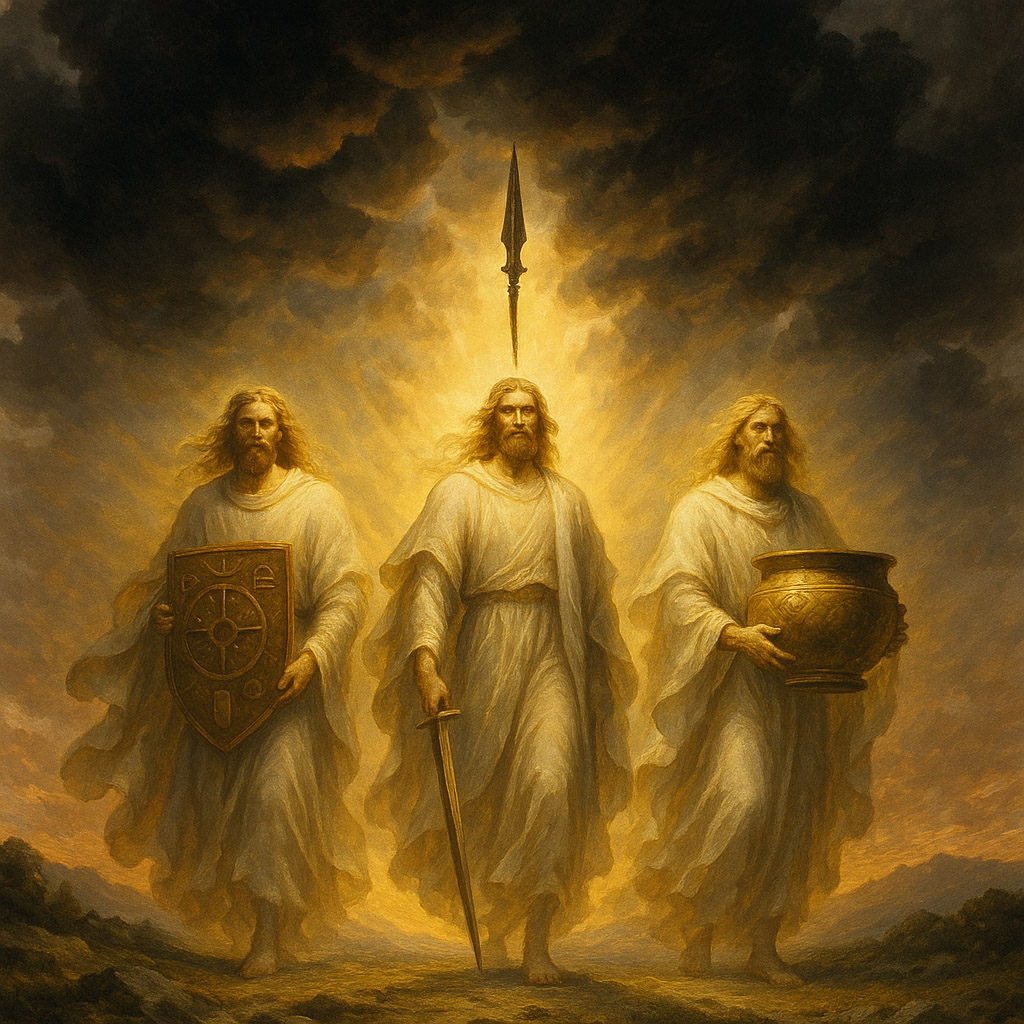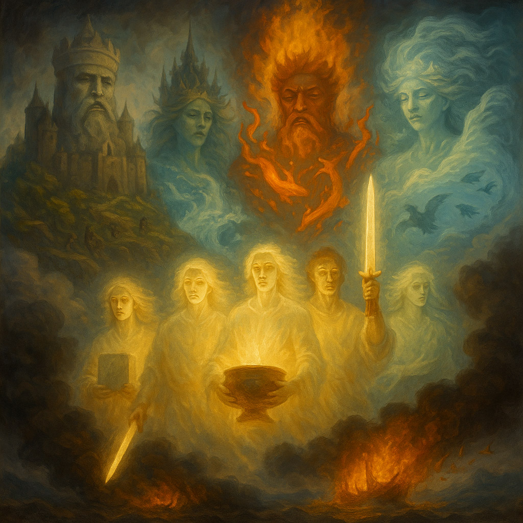 According to legend, the Cities of Wisdom were not the “homeland” of the Tuatha Dé Danann; they were the place of their formation, learning, and “growing up.” The Four Towers — Falias, Murias, Finnias, and Gorias — stand in the Interval as “condensed realities,” islands of stability amid the wavering fabric of the Interworld.