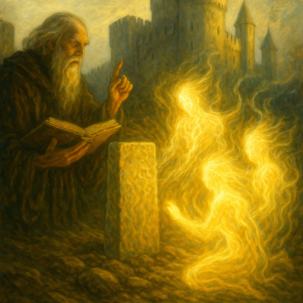 Morfessa of Falias is the “great knower,” the first Master of form and measure. His name is directly connected with “great knowledge,” which also aligns with the nature of Falias itself as a “fence-sanctuary,” a place where boundaries and contours are built and where objects are given their names. The teaching of Morfessa is a way to maintain form in accordance with logos: the Stone of Fál must sound under the rightful King, the word must correspond to the deed, and the structure must carry meaning within it, and not be merely inert mass.