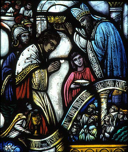 On Pentecost Day Galahad, clad in scarlet armor, came to Camelot to be knighted by King Arthur. The young knight sat in the forbidden Siege Perilous, said to be reserved only for the most worthy of all, under the special protection of God Himself.