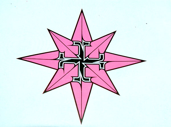 From a purely graphic point of view, the symbol of the eight-pointed star can be rendered either as two overlapping lozenges or as the superposition of two crosses — a vertical cross and a Maltese cross.
