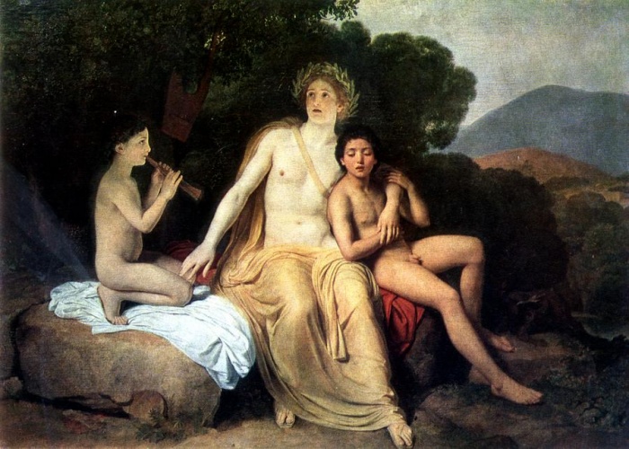 Well known are Apollo’s deeds. The serpent-slaying aspect of this god is the most famous. Apollo matured early and, still very young, killed the serpent Python (Delphinian), which had pursued Leto and devastated the vicinity of Delphi. At Delphi, on the spot where once the oracle of Gaia and Themis stood, Apollo founded his own oracle. Apollo also struck down with his arrows the giant Tityus, who tried to offend Leto, the cyclopes who forged Zeus’s thunderbolts, and he took part in the Olympians’ battles with the Titans and the Giants. Even in these myths Apollo’s punitive nature is evident.