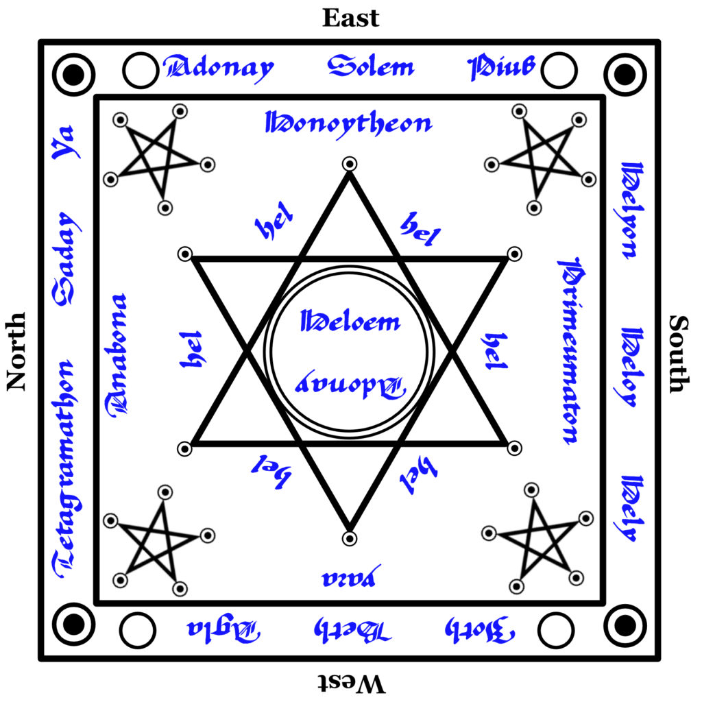 The Almadel’s technique is very similar to the methods employed by John Dee: a wax pentacle, covered with Names of Power and surrounded by candlesticks, serves as the Altar of Invocation.