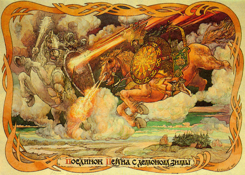 Despite the Thunderer’s “fertilizing” power, power alone is useless without the second (the “Velesian”): for the fertility of the earth both the “vertical” and the “horizontal” components are needed; for birth it is necessary not only to impart the spirit (to bring it down from the Heavens) but also to form the body (that is, to shape and organize matter).