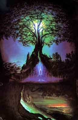 In Northern mythology, worlds are connected by the bridge Bifröst (‘shaking space’), which people see as a rainbow. In fact, it concerns points of free glide of consciousness across worlds through the ‘shaking’ space of the interworld.