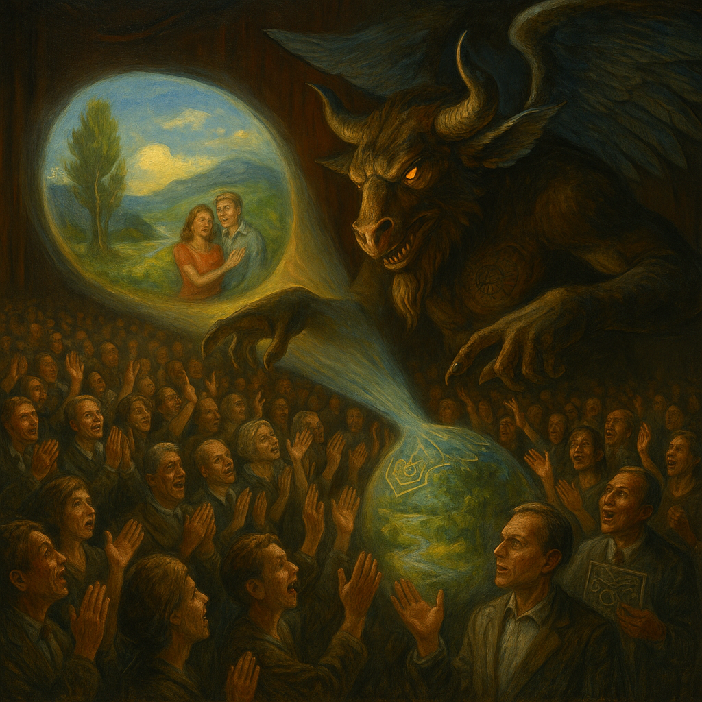 The matrix of Haagenti enslaves the mind subtly, not through suppression, like Belial, but through gradual substitution. He leads the mind to see not what is, but what is easier for it to see. Mass propaganda, pushed by another demon of manipulation — Adrammelech — appealing to “spiritual principles,” a “special mission,” or an “enemy at the gates” — is not just a lie, but a form of soporific fantasy. Under its influence, a person begins to identify himself with the image of the “system,” with its slogans, and loses personal boundaries of perception. Quite soon he no longer distinguishes where he himself is, and where the voice of propaganda has been fed to him.
