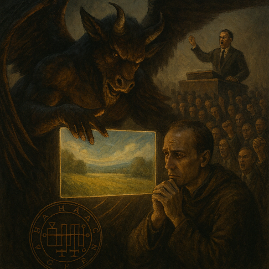 Besides, propaganda offers inner relief from guilt, from the need to think, choose, suffer. Under Haagenti’s influence, a person willingly delegates his will to the authorities and then no longer wants to take it back. His approach is a lie people want to believe. Its most terrible weapon is not pain, but consolation. Therefore, when society “sleeps” under the demon’s hypnosis, it cannot be awakened by arguments — except perhaps by a jolt that returns reality into the field of view.