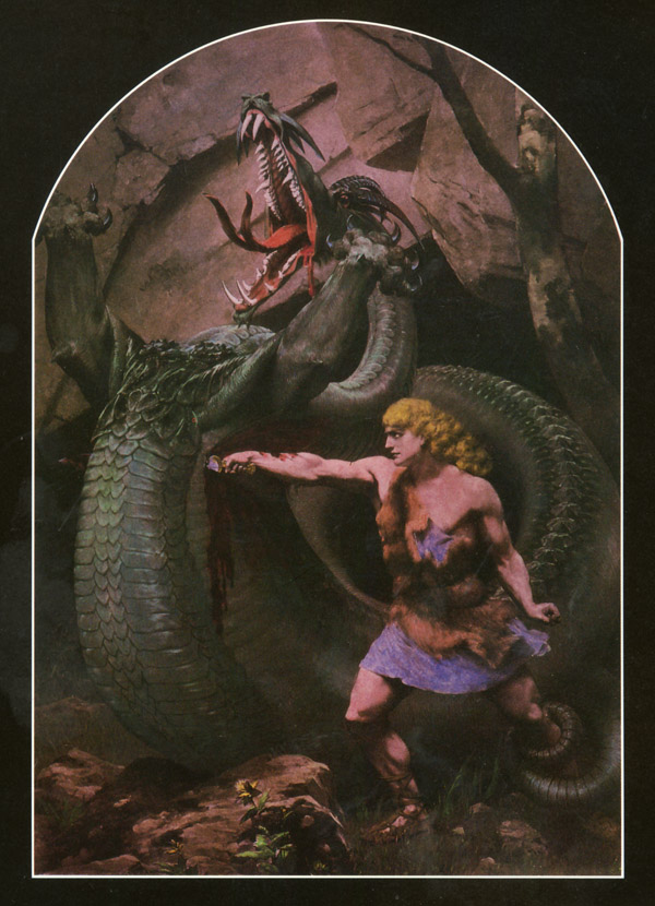 Legend traces the name to the mark on Fafnir’s helmet, which Sigurd acquired (“He had a helm–terror (“cegishjalm”), which all living things feared”). Because of that mark Fafnir inspired dread in any attacker and was therefore practically invulnerable; Sigurd had to hide in a pit so the power of the helm would not affect him and he could pierce the dragon’s heart.
