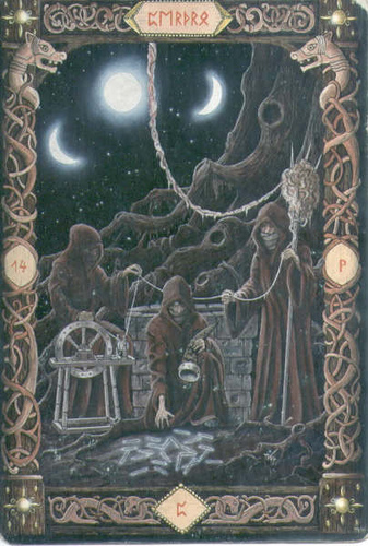 Urd – Fate, Verdandi – Becoming, and Skuld – Duty: the first ties the knots of destiny determined by birth (this is usually called, in Indian terms, “karma,” although that word is not entirely apt); the second provides for the realization of these key events (and here the very game of chance is possible, the intervention of Hamingja); and the third, expressing the “ideal” striving of the life path, its best development from the point of view of the world flow, ensures the coexistence of these two forces — inevitability and surprise.