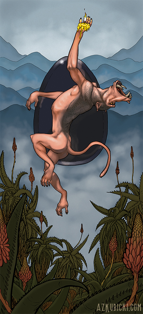 The form in which Gusion appears — “Xenopilus,” or in some variants “Xenophall” — corresponds to the notion of the “other,” and in the first case emphasizes that “otherness,” while the second emphasizes expansiveness and phallic aspect. Practical experience shows that the demon usually appears as a male baboon, and this image of an alpha male with an erect phallus ready to dominate outsiders accurately reflects the characteristics of the demon’s influence on the mind. The demon’s image underscores his inability to create anything new and only a limited capacity to reproduce what he “knows.” Gusion is devoid of creative activity but is very rich in “reproductive” activity. He can only produce similar approaches and solutions from templates, without going beyond the known. Remaining within the narrow confines of the experience available to him, the demon obstructs any attempts to go beyond that experience and create something fundamentally new.