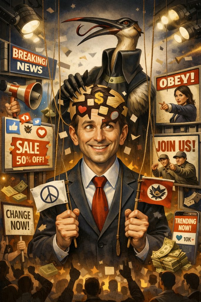 В современном мире, находящемся под двойным прессом – демоническим и архонтным — поощряется отсутствие у сознания четкого внутреннего центра, поскольку сознание с четким внутренним центром плохо продается, плохо управляется и плохо “встраивается” в социальные структуры. Мы уже обсуждали, что внимание стало валютой. Платформам выгоден человек, которого легко “переключать”: сегодня он один, завтра другой; сегодня клянется, завтра стирает свои клятвы; сегодня возмущен, завтра забыл и снова доволен. Интерфейсы и алгоритмы приучают сознание жить без внутренней оси, их оптимизация построена на продлении времени в ленте и повышении частоты взаимодействий; для этого удобнее всего держать человека в режиме микрореакций, а не в режиме длинной внутренней линии.