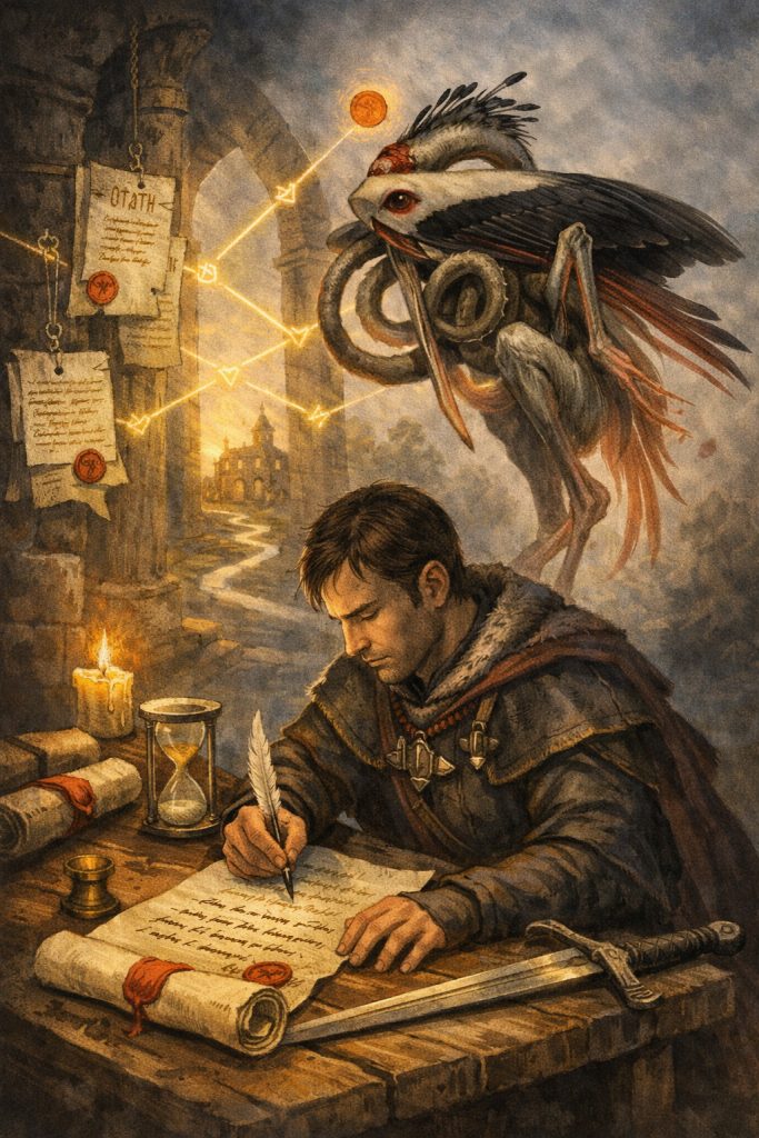 Поэтому в наши дни противостояние Шаксу начинается с восстановления навыка говорить меньше, но точнее, говорить так, чтобы обещание подразумевало обязательность его исполнения. Там, где обещание неотменяемо, оно выстраивает мир без «прорех» и «утечек», придавая ему форму, измеримость, ясные сроки и понятные цены усилий. Тогда слово снова становится способом построения будущего, не навязанного хищниками и паразитами, придавая миру характер упорядоченного потока, а не пассивного болота, которое будоражат заинтересованные потребители. В этом и состоит возвращение к исконному достоинству речи: обещание снова должно стать редким, тяжелым, живым — тем, что создает и оберегает центр сознания, не позволяя ему превращаться лишь в хаос аффектов.