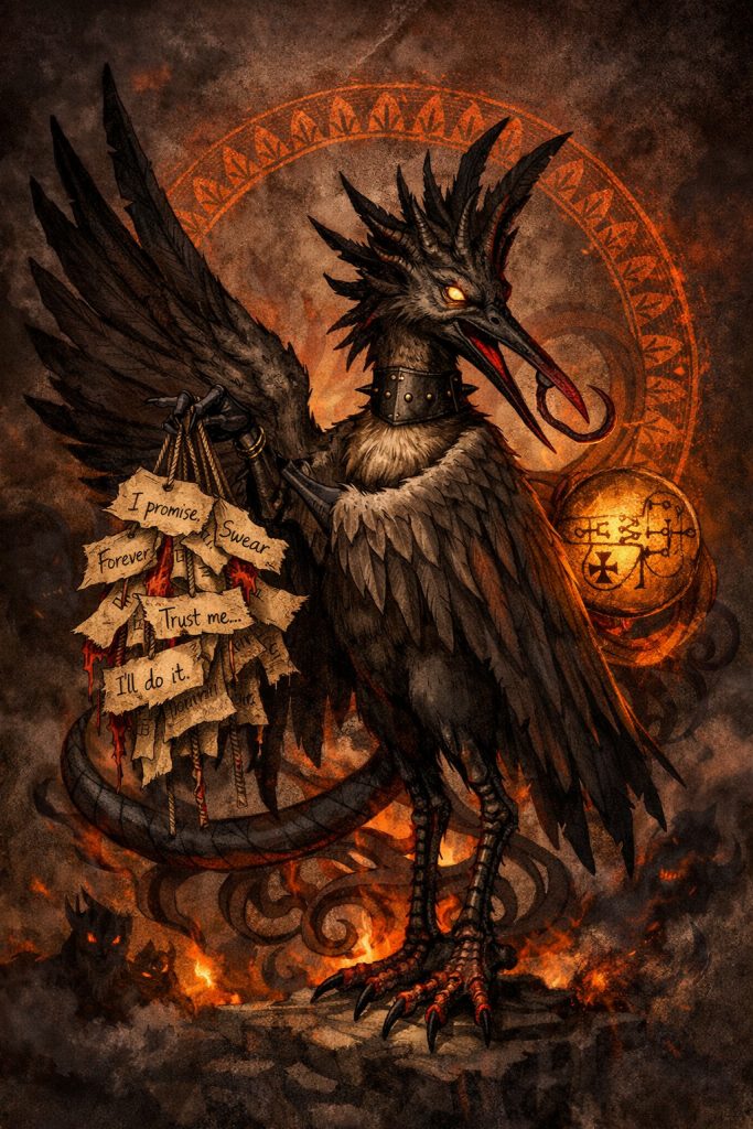 Шакс особенно легко получает власть тогда, когда человек воспринимает слово как вид собственности – и недаром этот демон относится к большой свите Асмодея (и его «младшего» подданного – Короля блуда, Белета). Под влиянием этого дестрактора обещание воспринимается просто как один из «предметов в кармане»: захотел — достал, захотел — спрятал. Такое отношение придает ощущение безопасности и власти, однако при этом разрушает уважение к логосу как основе мироздания. Тогда речь перестает быть творящим потоком, она превращается во «вторичный» инструмент, который призван просто обслуживать текущий интерес. При этом появляется едва заметная усталость от собственных слов, страх или отвращение к торжественным формулировкам, стремление “не обещать ничего”, чтобы не быть пойманным на несоответствии. Так Шакс приводит человека к состоянию, где обещания кажутся опасной глупостью, а верность — лишь пустым словом.