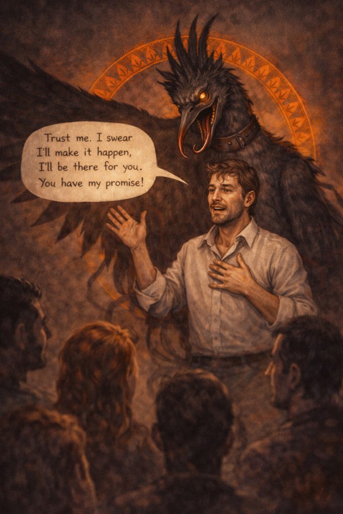Современная культура постоянно тренирует человека жить так, будто слово — черновик, а обещание — социальная смазка. В такой среде демон “обесцененной речи” легко «договаривается» с выгодой платформ, с шумом времени и с привычкой отступать безо всякого внутреннего сопротивления.
