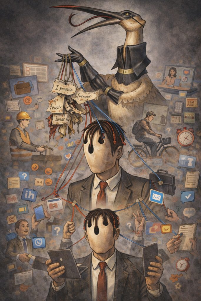 Такому миру выгодна управляемая пластичность идентичности. Когда человек ощущает себя лишь “проектом”, который надо постоянно переписывать, он легче покупает новые символы, роли, языки, принадлежности. Тогда человеческий опыт превращается в «поведенческие данные» и “продукты предсказания”, которые продаются тем, кто заинтересован знать, что человек сделает “сейчас, скоро и позже”. Для такого рынка гораздо удобнее человек без твердого внутреннего решения: он предсказуем именно своей реактивностью. Мир награждает тех, кто умеет быстро обещать и быстро переключаться, кто сохраняет обаяние и правоту позиции даже после отмены собственных слов.