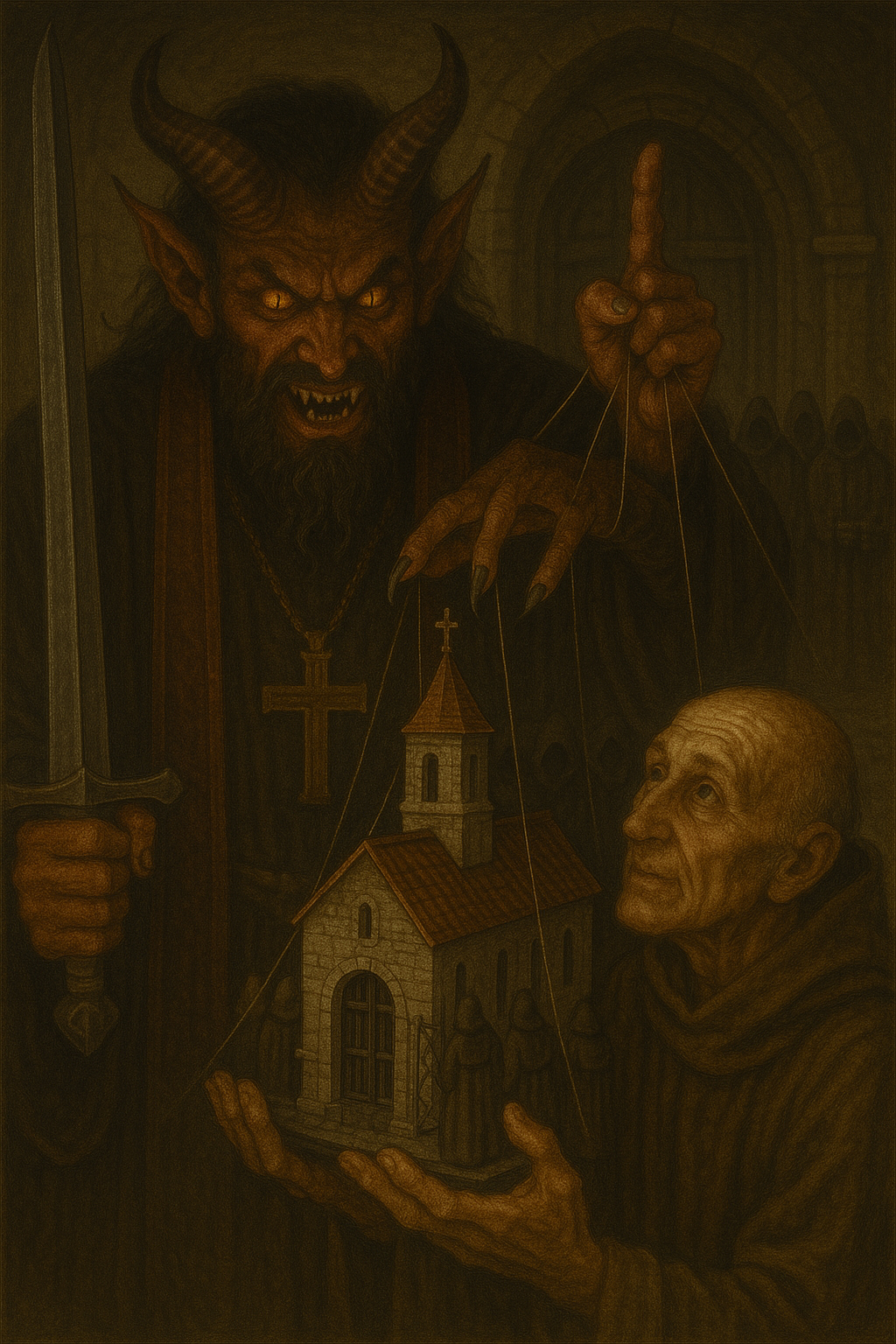 Именно так Батин вырастает из «частного» демона эзотериков в «изнанку» жреческого сословия. Жрец, монах, член Ордена, инфицированный этой матрицей, перестает быть свидетелем и проводником и становится распорядителем: он не просто служит у Врат, но объявляет себя их владельцем. Доступ к Силе превращается в услугу, спасение – в дефицитный ресурс, распределяемый «по усмотрению» тех, кто стоит у алтаря.