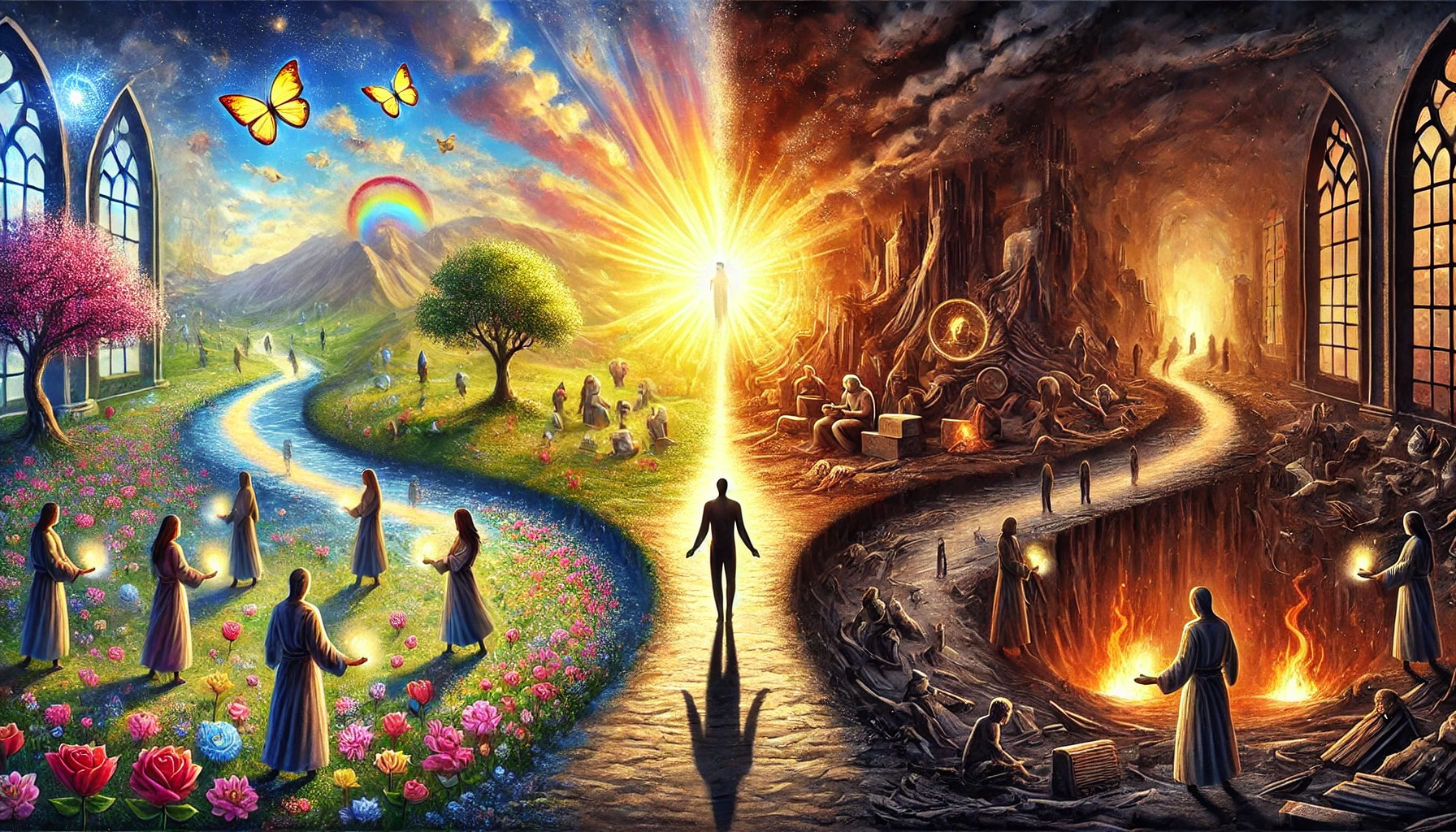 Соответственно, борьба за выживание тел сменяется вопросом выживания душ. Теперь каждому предстоит выбор – сохранить ли свое сознание живым, творческим, любящим и сострадательным, либо – стать на путь разрушения самого себя и своего окружения. И напротив, люди, которые выбирают путь любви и понимания, не только сохраняют свою душу живой, но и вдохновляют других.
