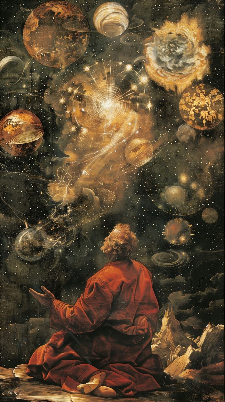 Таким образом, с позиции герметической (платонической и пифагорейской) системы мироописания, реальность — это согласованная игра логосов (отношений/законов), их эйдосов (идеальных математических форм) и соответствующих номосов (операционных кодов вещей). Материальность, или, точнее — «вещественность» — возникает как устойчивое сечение этой структуры при измерении (наблюдении, «счислении») и вложении энергии. А пространство-время и причинность — не первичные, а эмерджентные эффекты согласованной информации. При этом на языке классической философии аполлонический полюс – это проявление иерархии логосов, то есть — математически выраженная «речь» реальности о самой себе. Дионисийский полюс — это процессуальность, становление эйдосов как целостных «иделаьных» форм. Между ними и заключена Среда (телесми, хôра, межмирье), чья однородность-ананке одновременно сопротивляется и поддерживает формообразование. А на пути к проявленности образуются номосы, которые превращают найденные эйдосы в доступные «рядовому сознанию» практики, меры и законы. Такая точка зрения снимает спор «материя или сознание первичны», поскольку первичными понимаются формы отношений (логосы), которые реализуются как математические эйдосы, получают конкретные выражение (номосы) и, пройдя через измерения и вложения энергии, проявляются как «вещественность». Так «число» (Аполлон) и «поток» (Дионис) сходятся в орфическом синтезе — там, где счисление оживает, а становление становится осмысленным. В этой целостности и состоит верная стратегия познания/сотворения реальности: дионисийская спонтанность, осознанная как эйдос, аполлонически сопоставленная с соответствующим логосом и затем – «конкретизированная» в номосе, при постоянном влиянии «инерции»-ананке среды. Именно так «информационная» вершина логосов, «эйдетическая» глубина форм и «номическая» явленность мироздания замыкаются в единый круг реальности, который сознанию предстоит и понимать, и создавать.