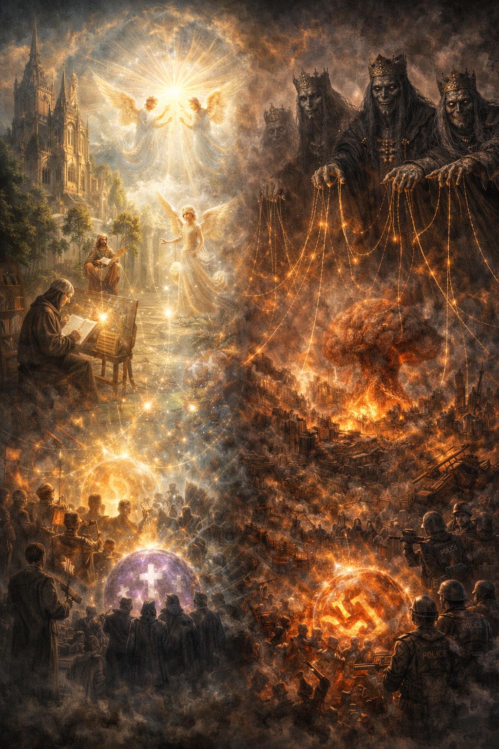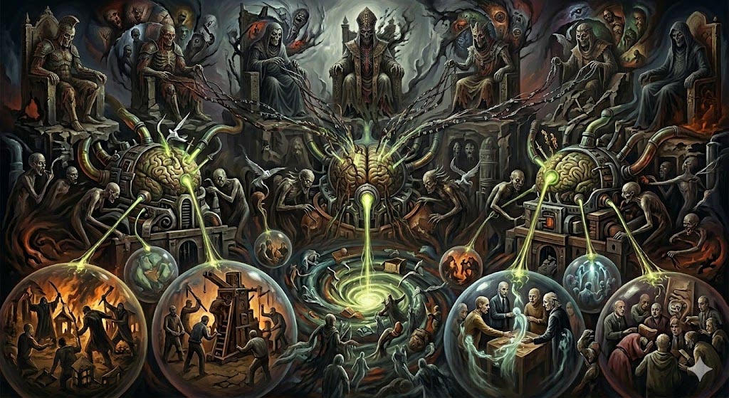 Каждое вторжение рефаим — это атака на структуры восприятия и механизмы интерпретации живых. Накачивая эгрегоры противоречивой, эмоционально заряженной информацией, мертвые правители провоцируют массовую социальную шизофрению. Общество лавинообразно утрачивает способность к связному, критическому мышлению и распадается на конфликтующие фрагменты. Именно в такие периоды действия масс приобретают характер абсурдного, анти-логичного театра: люди с фанатичным восторгом начинают бороться за собственное уничтожение, с легкостью меняют базовый инстинкт самосохранения на бредовые идеи и принимают очевидные, логически несостоятельные иллюзии за непререкаемую истину. Этот гротеск — во многом результат того, что расколотое, лишенное целостности сознание мертвецов буквально «прошивает» умы живых. В такие моменты инерция хаоса становится полностью автономной. Этот процесс отрезает сознание людей от высших смыслов и превращает их в идеальных, бесперебойных доноров огромных массивов энергии для голодных духов межмирья.