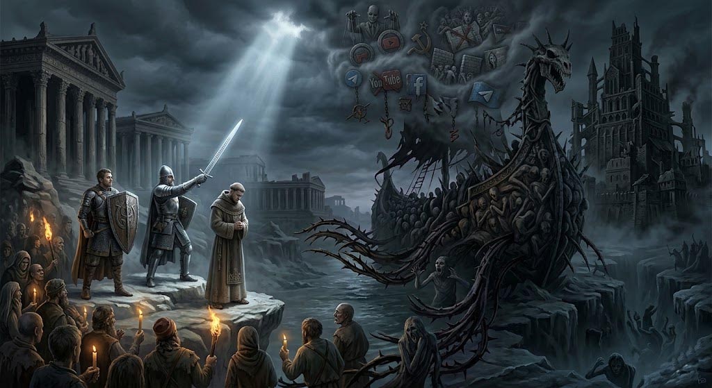 Именно поэтому для каждого, кому довелось жить в такие исторические «сумерки», критически важно культивировать в себе истинные качества воина: честь не позволяет пойти на компромисс с паразитическими структурами и раствориться в хаосе толпы, критическое мышление является тем острейшим мечом, который может рассекать морок эгрегориального безумия, не давая превратить себя в слепой «строительный материал» для корабля мертвых, а сострадание — живая, созидательная сила, которая лишает рефаим их главной пищи, гася волны ненависти и разделения.
