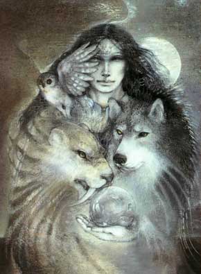 Opinions differ regarding the permanence of Animal Powers: sometimes it is thought that an animal of power becomes one of a person’s Keepers and remains with him for the rest of his life. Others hold that each animal of power stays with a person for several years, then is replaced by another. Animal powers that remain a person’s totems for life are, as a rule, wild rather than domesticated animals. It is believed that there are two kinds of animal power-totems: the internal (central) (the one that defines the person’s essence) and the external (spirits that help the person and guide him through life). The internal totem is the animal whose habits, customs, and way of life suit you best. Someone compares himself to a wolf, or a jaguar, a bear, or a mouse. The external totem guides the person through life like a guardian angel and manifests itself in different ways, depending on the traditions the person follows.