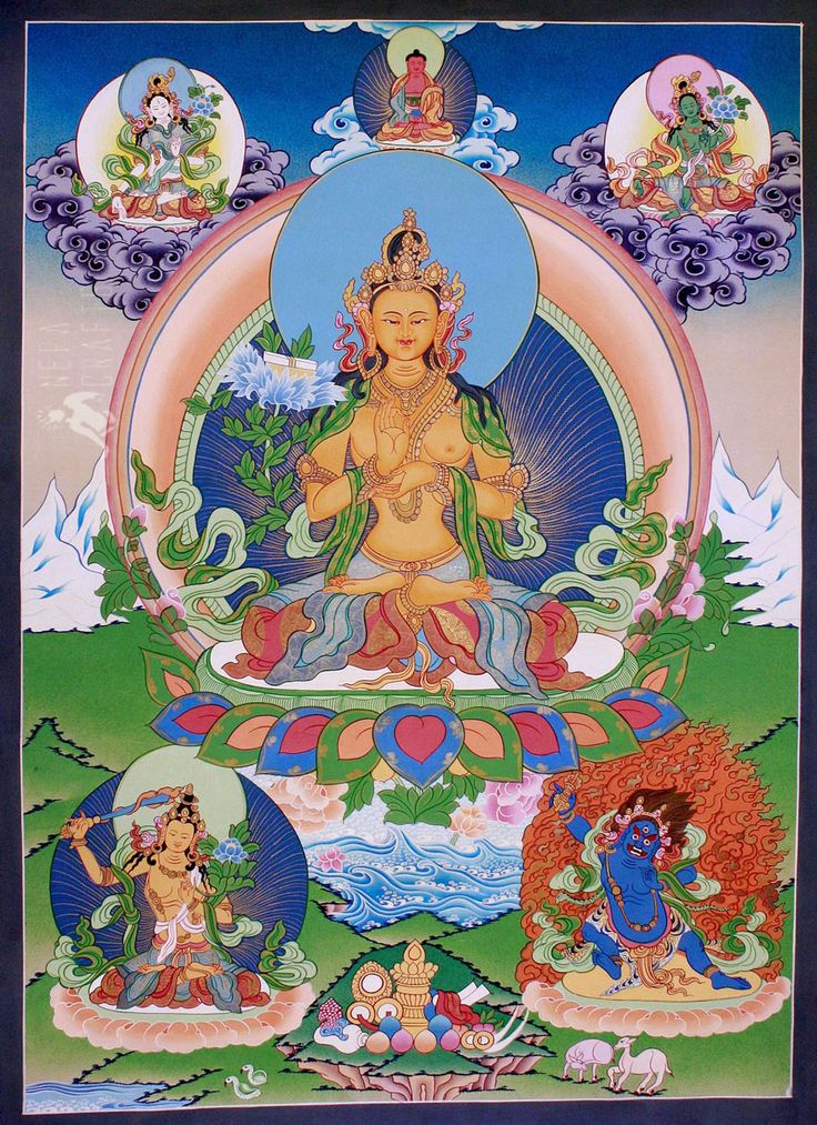 In Buddhist terminology, Higher Wisdom (Prajnaparamita) is a combination of the vision of Emptiness (shunyata, groundlessness of manifestation) and Luminosity (vidya, primordial clarity as the nature of mind). One can come to such a vision by three paths — through Compassion (Avalokiteshvara), Power (Vajrapani), or Wisdom (Manjushri).