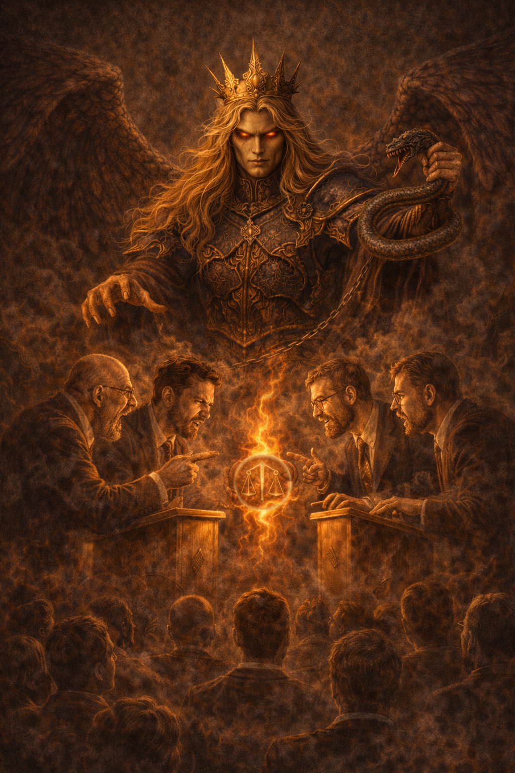 In such an environment, Astaroth can easily find “nourishment” for himself. His classic descriptions mention two important aspects — the beauty of form and the poison of content. He appears as a beautiful but cold angel; next to him is his mount, a snake, a symbol of wisdom that is also a sign of poisoning; and — fetid breath, that is, knowledge in which decay has already begun. This stench in the ritual is felt quite physically, as if the very space of meanings is rotting; and against this background, the demon’s “pleasant voice” becomes an instrument of paralysis of mind, and the stream of arguments turns out to be so dense that the mind simply loses any ability to step back even one step and check where it is actually being led.