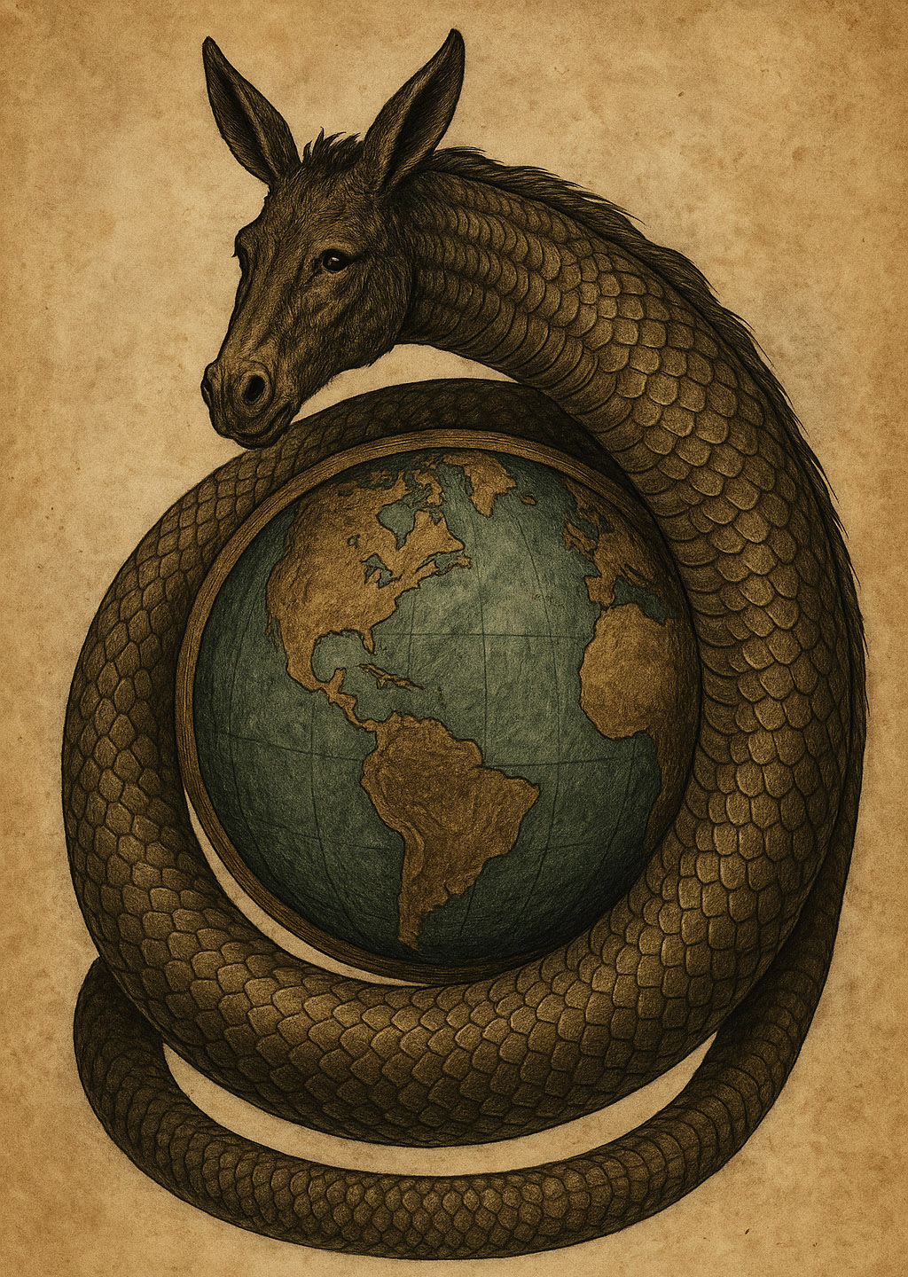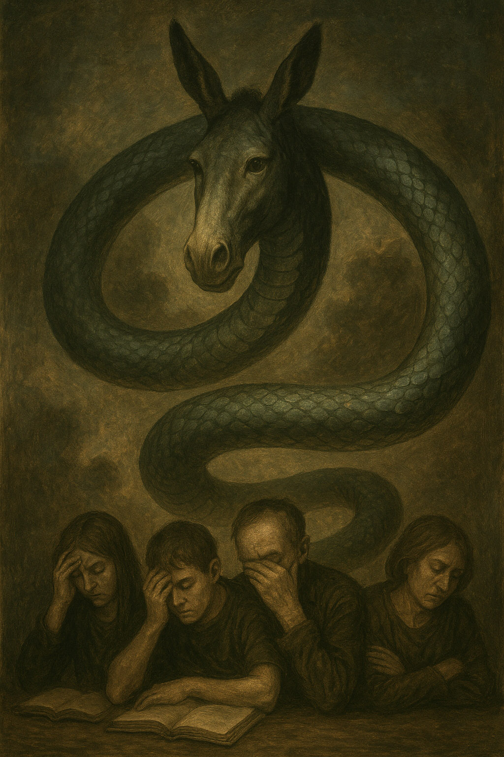 Eloai, the Archon of false reason, ruler of mercurial forces with a donkey’s head, gives this destructor the persistence of habit: “don’t invent, repeat,” “don’t think, search.” Under his influence, thought does not seek a path, but clings to any pre‑laid route. Hence the Archon’s “donkey” head as an image of persistent yet thoughtless following along a trail where the main thing is to go without asking questions: where and why.