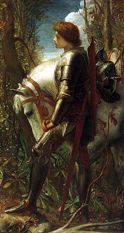 The valor of this knight was of an entirely different order than Lancelot’s courage. At the sign of the cross the unclean forces — the many incarnations of the devil he met — would crumble to dust or flee in terror inspired by his purity. At the same time the blessing of the sinner Lancelot is received by Galahad as the most precious of all other blessings not only because it is paternal, but because in that blessing is reflected the priority of purity over the thirst for adventure: “‘Sir,’ answered Sir Galahad, ‘no prayer has such power as yours.’ And with that Sir Galahad plunged into the forest.”