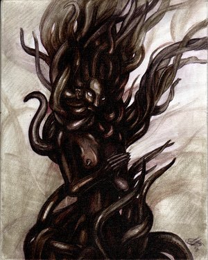 Every conscious being is surrounded by a host of qliphothic beings that feed on its emanations. Such spirits consume malice, aggression, fear, sorrow, lust, and other chaos-producing emanations of beings. They often provoke beings to intensify their emissions, yet qliphothic spirits can never be satisfied, and they endlessly destroy everything around them in a vain attempt to obtain what does not belong to them.