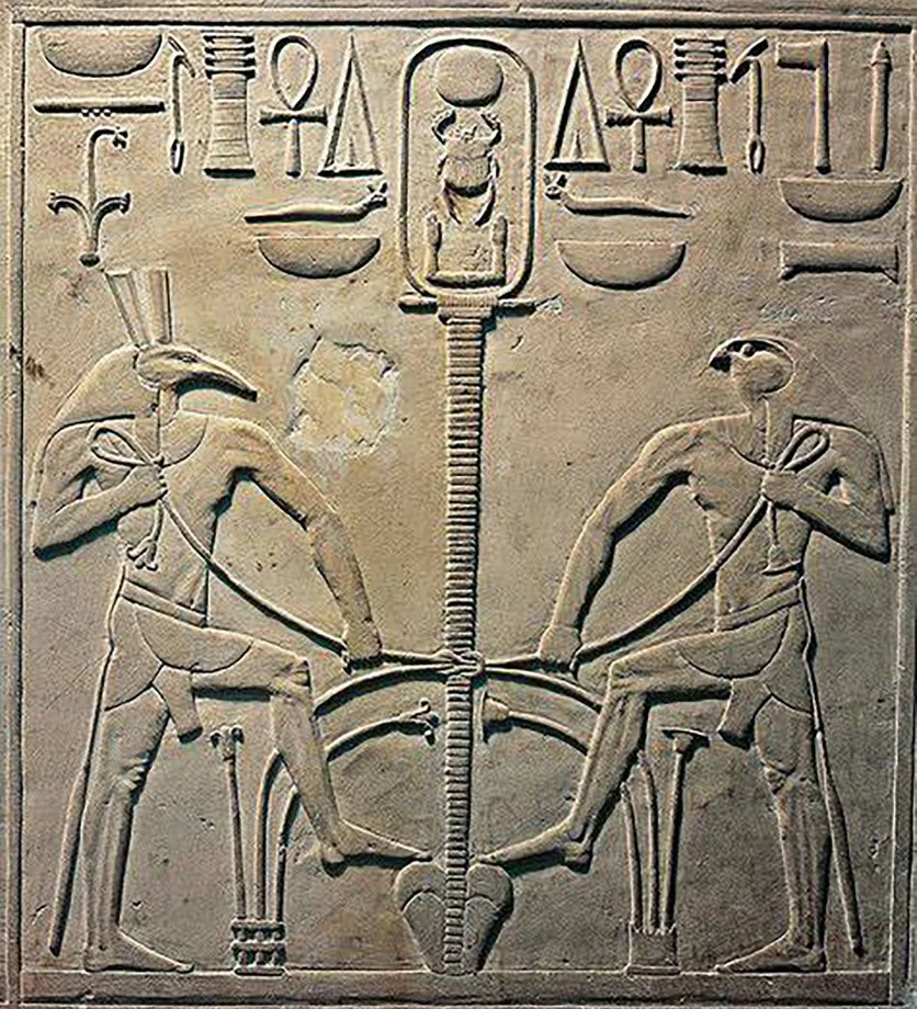 Tightly associated with Osiris is the image of his divine sister and consort — his anima — Isis, who embodies the very energy of life; his “son,” in fact the actual, dynamic manifestation, the “Heavenly variant” — Horus; and the “evil double,” the dark alter-ego, the spirit of death and destruction — Set. They form three pairs of interaction: the Isis–Osiris pair expresses the duality of life as principle and life as energy; the Osiris–Horus pair personifies the dichotomy of potency and actuality, the subterranean foundations of life and its Heavenly source; and the Horus–Set pair expresses the confrontation of creative and destructive forces in the manifest world.