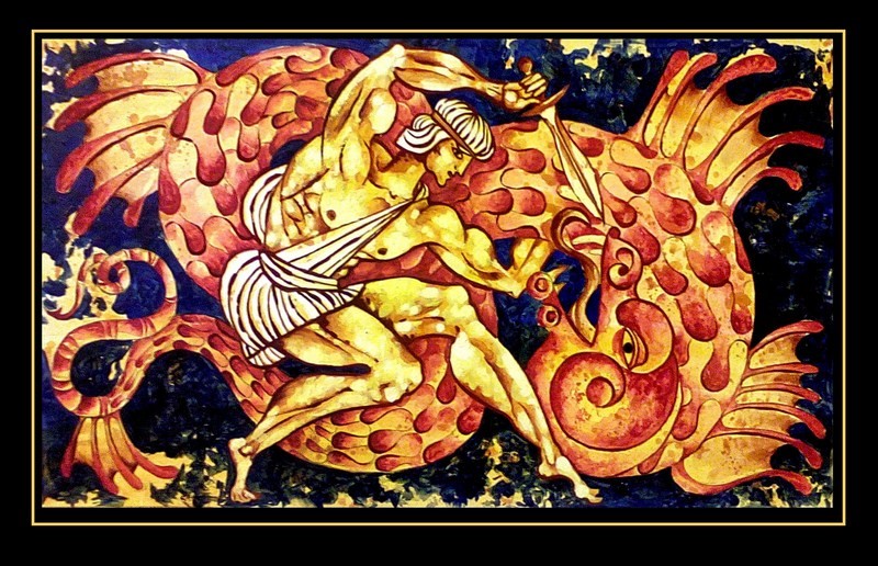 Just as, for example, the existence of the physical Universe is due to an ‘asymmetry’ between matter and antimatter — namely, effectively to the predominance of one pole of the binary over the other — the existence of any system is maintained by an “asymmetry” between order (cosmos, maat) and chaos (destruction, isfet). Therefore the second important conclusion that can be drawn from the myths of Solar battles is that the forces of creation and destruction are fundamentally linked and binary. Thus, among the Egyptians Ra and Apophis are sometimes described as brothers born of the great goddess Neith, just as Horus (the elder) and Set are brothers born of the goddess Nut. That is, the annihilation of one of the poles would inevitably preclude the possibility of the system’s very existence, and its stability is achieved only by the predominance, the dominance of one of the principles.