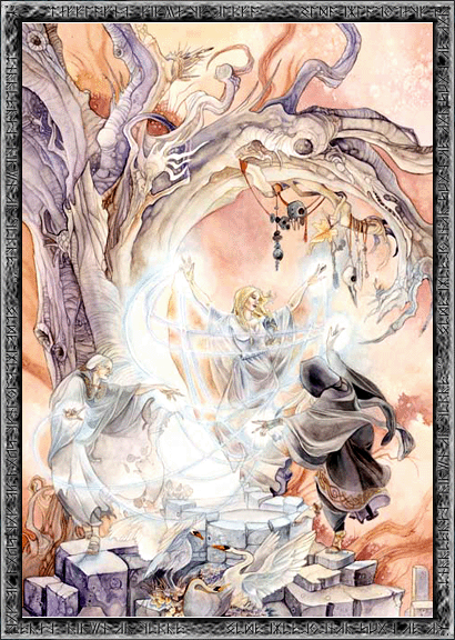 The division of the Elder Gods into creators of things and creators of laws is somewhat artificial, since in creating things the Gods simultaneously establish the laws governing those things’ existence. At the same time, it often happens that, having completed Creation, the Elder Gods withdraw from active interference in worldly affairs, because their mere existence guarantees and conditions the continued existence of the things and laws they created. The active maintenance of those things, however, is left to the Younger Gods. Thus, although Veles is the Father of Life, the active maintenance of its flow is the work of Dazhdbog; although the Dagda (the Earth God among the Irish) created the Sídhe (the Otherworld), its governance belongs to his descendants; although Svarog rules the Primordial Fire, the principle of Fire is entrusted to his son — Semargl.