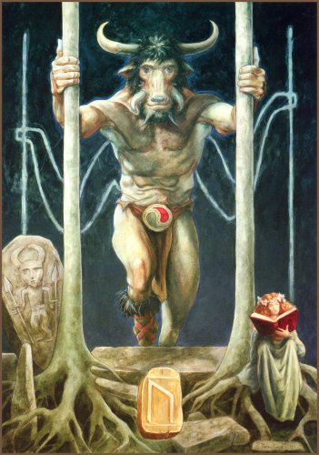 And then the entire inertia of previous movement, all errors and problems, crashes down on the traveler. When the first wave of Uruz subsides — and it subsides far more quickly than one would like — mountains of detritus lie on the cleared ground, which must be removed to allow free movement. This stage of first resistance is symbolized by the Rune Thurisaz, and, as Thor constantly battles the giants, so the Magus at this stage faces titanic effort to release power. This stage requires the directed application of Power — not merely intoxication by it, as in the Uruz stage, but the disciplining of oneself and one’s manifestations. The danger here lies in overestimating one’s capacities, in “undermining” the veins of power, and, consequently, in the first disillusionment with oneself. The result of successfully passing this stage is the formation of a direction of will.