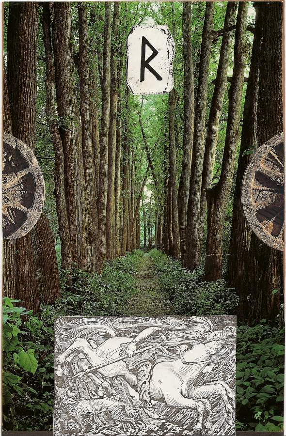 In the next stage movement acquires a progressive character, becoming even and rhythmic. The Rune Raidho brings comprehensive change, turning accumulated breakthroughs into transcendence, much as every attainment of a “critical mass” leads to qualitative change. In practice, this means, above all, awareness of oneself as a system in which one cannot change a single element without changing all the others. The Way also begins to be seen as an integrated system, in which its beginning already contains the potential for completion, and the Way itself appears as the successive actualization of that potential. However, this stage shows that the Way is, among other things, a constant effort of advancement and overcoming, “riding, as they say, is hard for horses“. Raidho is a long, even road without visible changes, and fatigue begins to accumulate, the danger of which may lie in developing faint-heartedness, a desire to rest, to pause. If these dangers are overcome, the result of the Raidho stage is the creation of a proper intention to move.