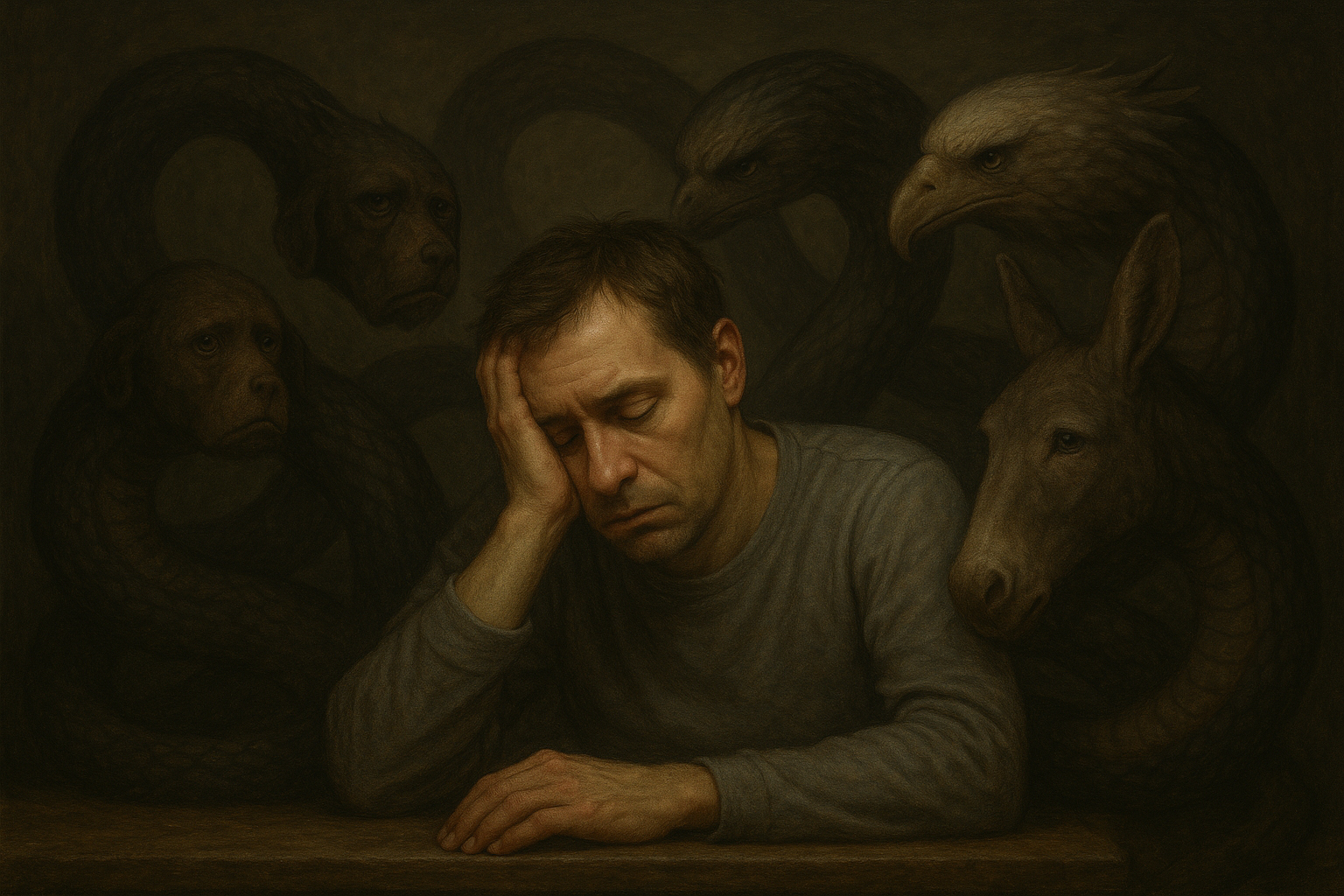 From the standpoint of the mind, Archonic paralysis of will may be described as a splitting of the mind’s vectorization: one part strives toward change, another is afraid, a third is ashamed, a fourth is already rehearsing future failure within itself. As a result, no real movement occurs, and energy is dissipated into inner frictions. Clearly, such a condition cannot be “broken” by a simple effort, for this would only cement yet another layer of inner violence: one would be forced to pretend, to play the role of the active and “strong-willed,” while in fact continuing to live with a masked feeling of impotence.
