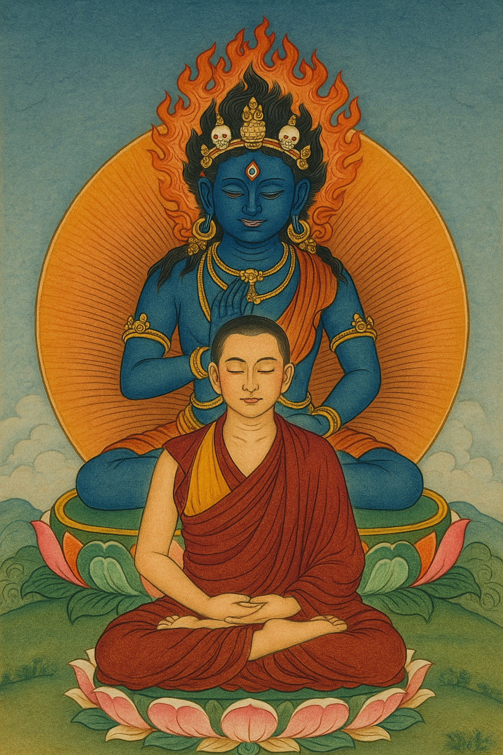 At the same time, it is well known that as one deepens into any liberating practice the danger of false visions and misinterpretation of experiences increases. Thus Buddhists warn about the interference of Mar — obstructing forces: on the path of meditation frightful or, conversely, seductively beautiful images may arise that are nonetheless merely projections of the mind or the play of lower spirits, and they should not be taken for genuine signs of attainment. With respect to idam practice, teachers instruct humility and caution against literally considering oneself a deity, otherwise one risks falling into megalomania or spiritual collapse. Hence the emphasis on an experienced Master who monitors the student, and on vows — they protect against improper conduct.