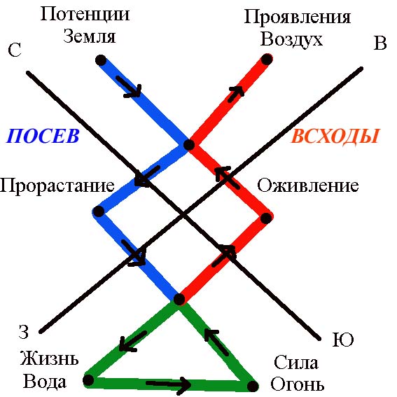 In any case, the Kolo Dazhdbog reflects the process of enlivening — for example, the sprouting of a seed — and naturally includes 8 key steps, which, together with entry and exit points, yield 10 stages.