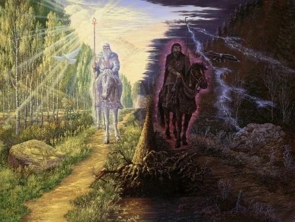 Eastern culture emphasized the importance of each pole of the world-process, objectifying them in the images of the great gods — Vishnu and Shiva. The world is destroyed only when it has exhausted its possibilities for development and is created only when destruction has been completed in full, leaving none of the former system’s elements intact. The same idea is conveyed by the Slavic notion of the god’s struggle with the serpent and by various other mythological pictures. But even such a broad and vivid imagery does not always aid a deep understanding of the idea.