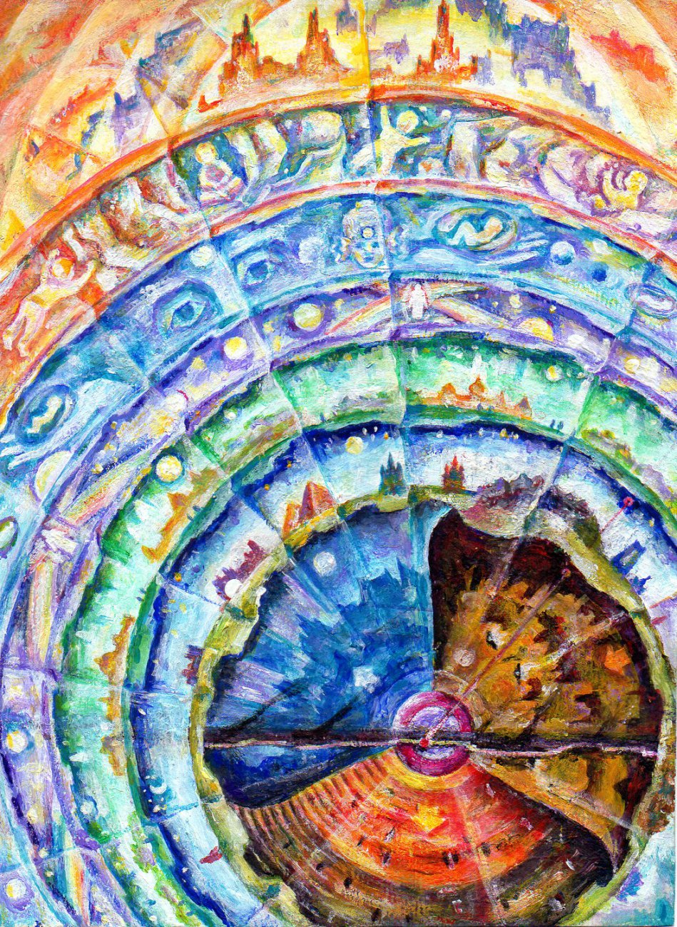 A similar model exists in the East, where such nested worlds were called “brahmakosha” (“the shells of Brahma”), and later theosophy described it as the “planetary chain“. In the last century the visionary Daniil Andreyev synthesized these ideas in the image of the “bramfatura” (“the structure of Brahma”—from “Brahma,” the organizing god of the universe in Hinduism; the name relates to “growth, increase, rise,” and “facture” connotes making or structure). A comparable image is offered by the concept of the “World Tree“, notably Yggdrasil. Mythological toponyms thus function as descriptions of the modes of being of a given spheromata: they indicate the kind of guide required, the degree of stability necessary, and the key needed for transition.