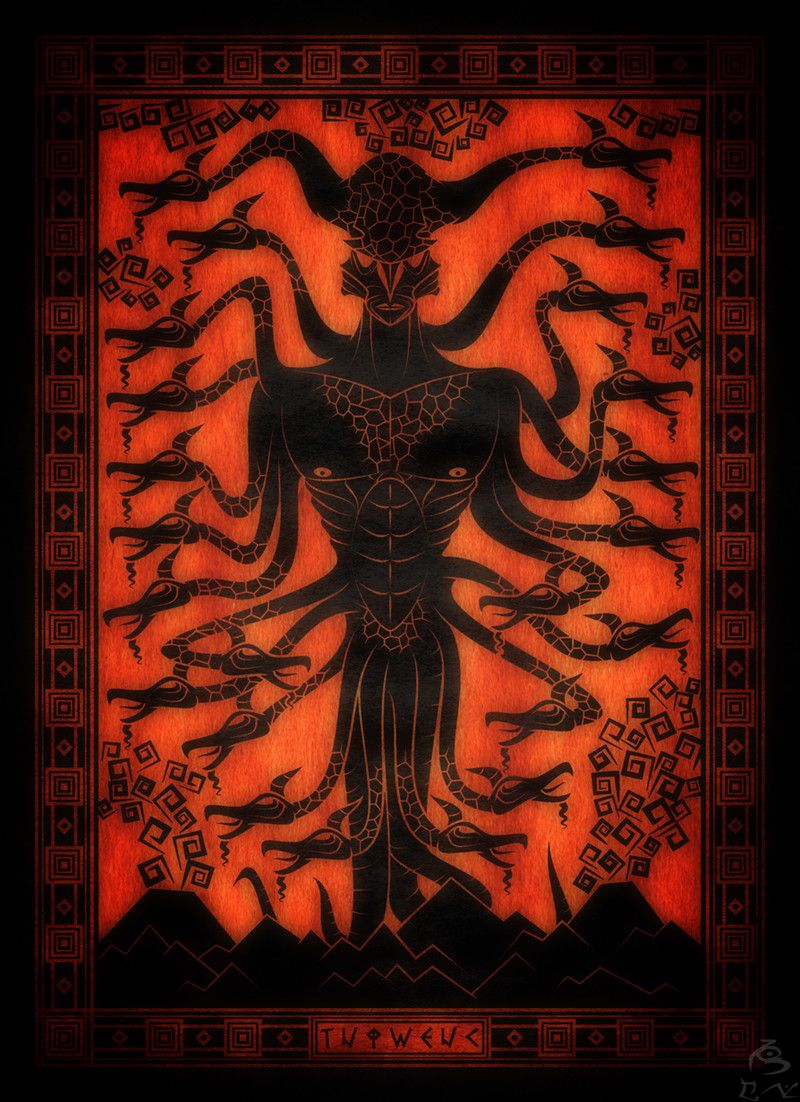 Классический образ Тифона оказался удивительно точным как отражение этой силы. Его змеевидность и гигантский масштаб описывают «всесторонний» охват среды: кольца, обвивающие мир, — это прочное удерживание, скручивание потоков энергии и сознания в спирали обладания. Родство Тифона с Ехидной (Лилит) указывает на комплементарность воли-к-владению и желания-к-обладанию: «отец» задаёт форму и способы, в то время, как «мать» умножает производные сущности, — монструозные именно потому, что они рождаются без соответствия размеров сосуда – тому, что он пытается вместить. Ещё одно ключевое соответствие — эпизод кражи Тифоном «жил-сухожилий» Зевса, которое означает лишение творческого, божественного принципа его двигательной силы. Архонтная алчность делает именно это с каждым субъектом: она вынимает «жилы», то есть – реальные мотивы из поступков, оставляя только способность удерживать и блокируя – способность к превосхождению; в итоге воля консолидируется только на удержании, а не на эволюции или трансформации.