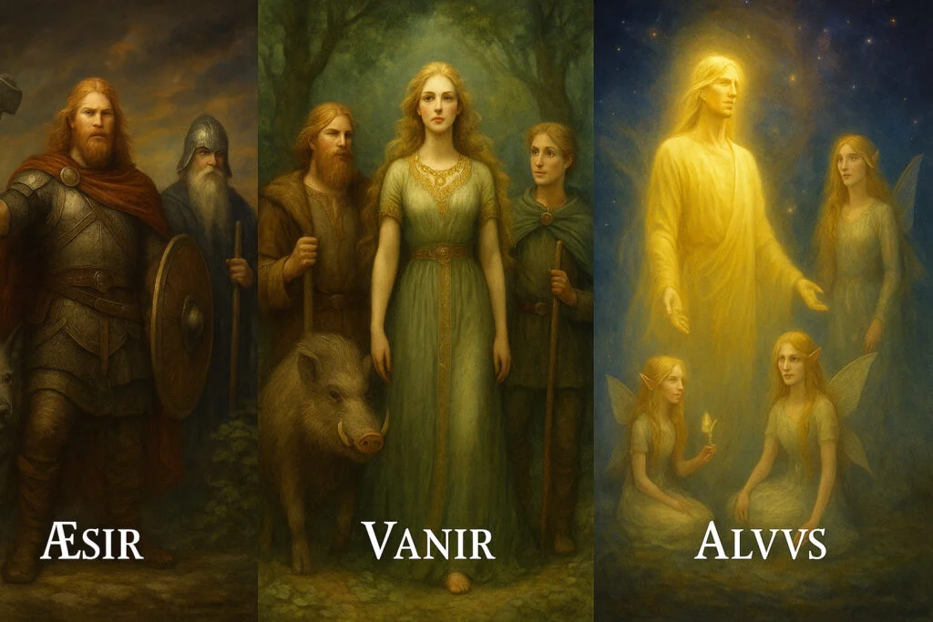 Прежде, чем асы – боги направленного сознания – смогут выстраивать «известные», оформляемые и познаваемые, миры, прежде, чем ваны – боги жизни и потока – смогут направлять реки жизни по их руслам, должны «поработать» альвы, создающие само поле для творения, саму ту «безвидную и пустую» землю, которая извлекается из бездны, освещаясь их светом, и только тогда становится ареной для мировых драм, битв и созиданий.
