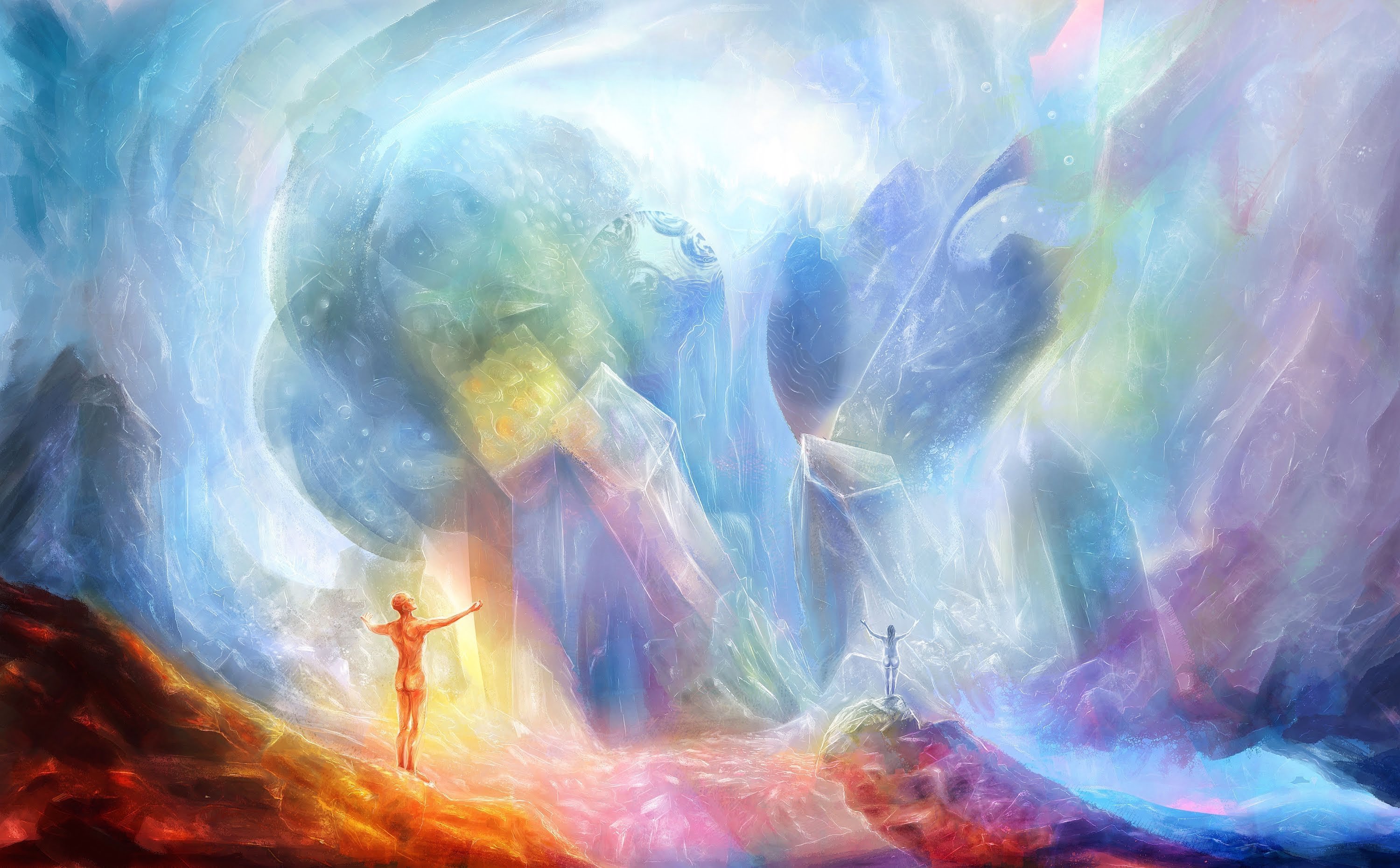 Примечательно, что в этом Христу помогают «Два Света», которые иногда отождествляются с Архангелами Михаилом и Гавриилом, и, очевидно, представляют собой две светоносные способности сознания – «чистый» Разум и «чистое» чувство.