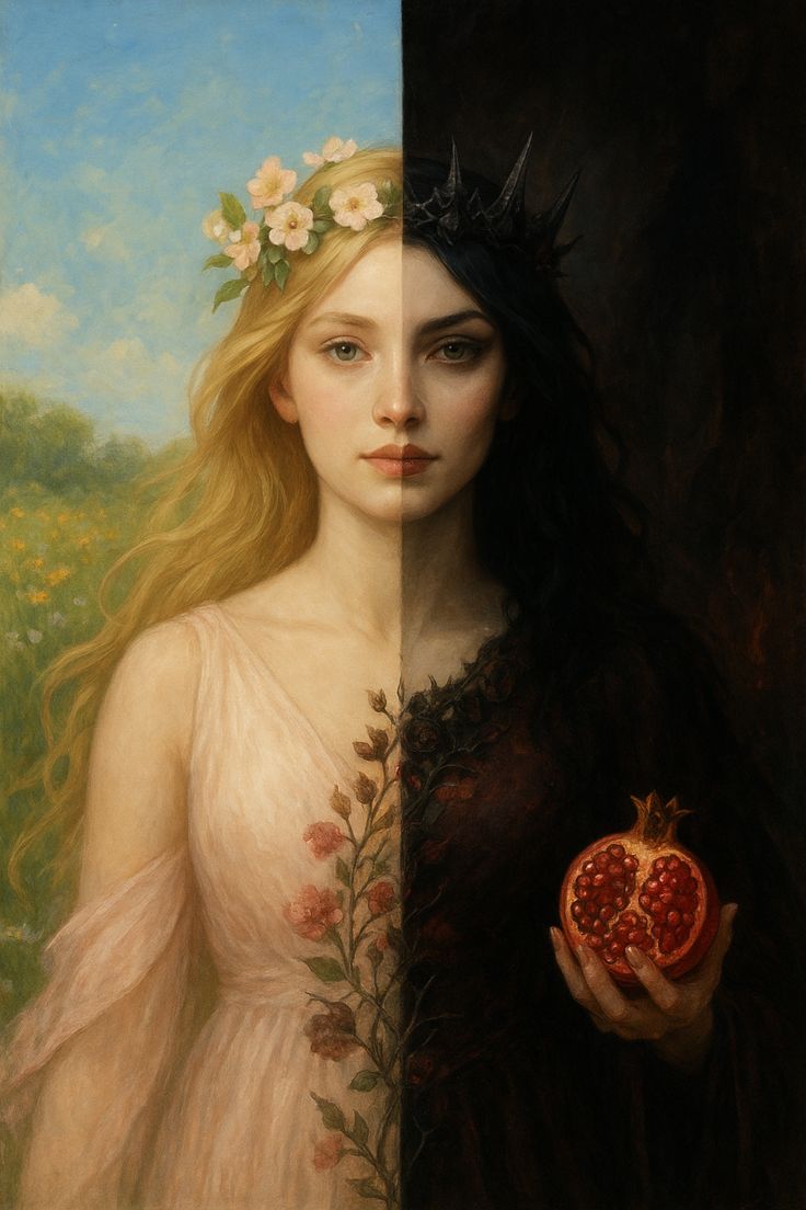 С этой точки зрения, Персефона — это личностный аспект Геи, но уже преобразованный Деметрой, душа, проходящая смерть и возвращение. Ее состояние — не случайное «падение», а естественное и закономерное положение человеческой души: она уже разделена между светом и тьмой, «часть года наверху, часть — внизу». Другими словами, согласно греческим представлениям, душа изначально не целостна, ее «орбита» неустойчива.
