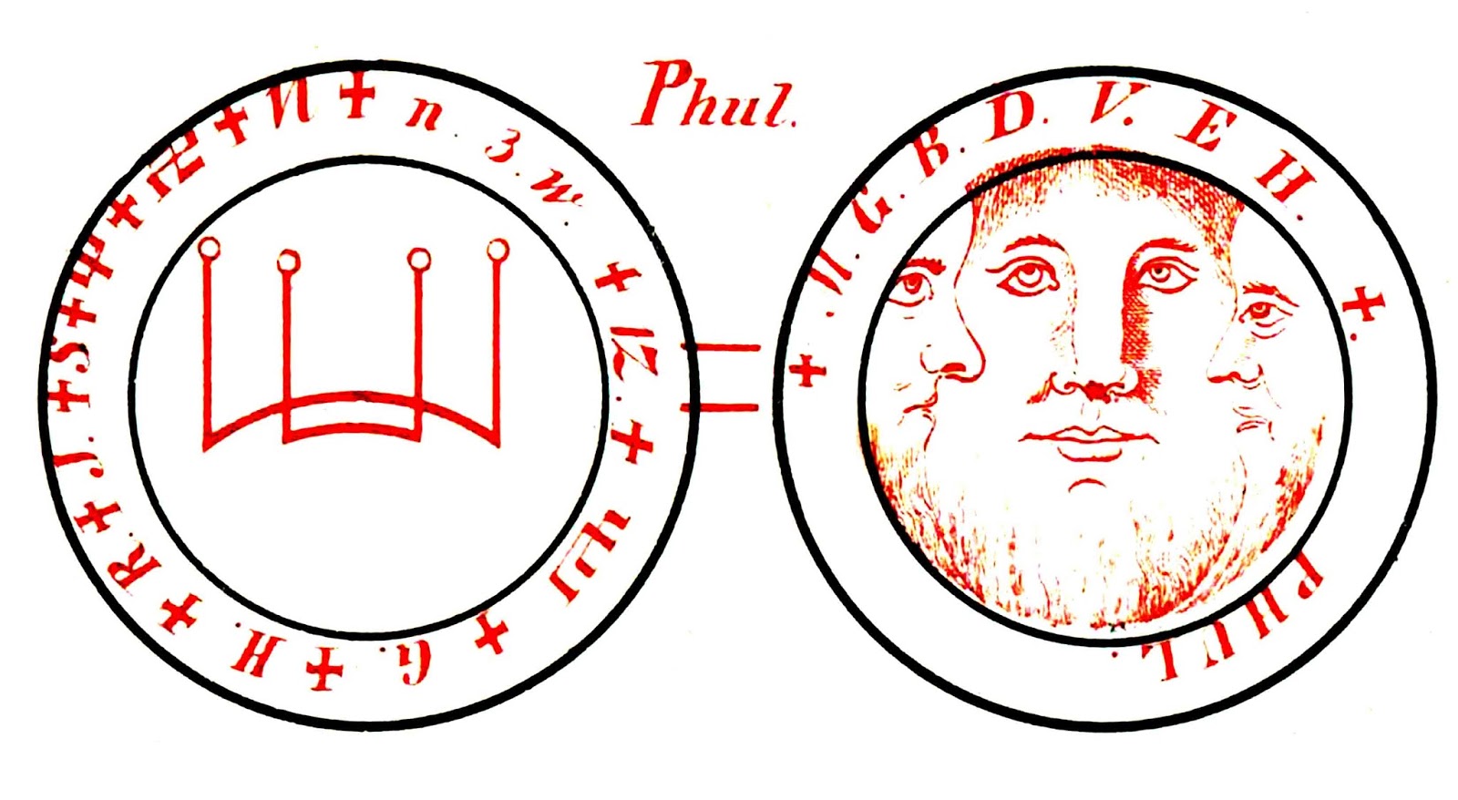 Два полумесяца по краям – это два способа нейтрализации бинеров – в реальности и в возможностях, а центральный прямоугольник – это, собственно, сам проявленный мир. Две буквы Е – это, соответственно, Essentia и Existentia — Сущность и Существование, то есть – глубинный и поверхностный уровни бытия, также являющиеся отражениями друг друга и суммирующиеся в понятии «Ens», «бытие».